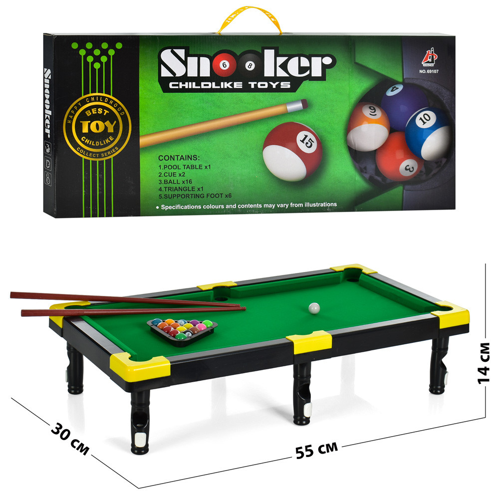 Настільна гра Більярд 69107 . Комплект включає поле для гри. Ця гра допоможе розвинути дитині дрібну моторику, логічне мислення, а також вивчити базові правила гри в більярд.